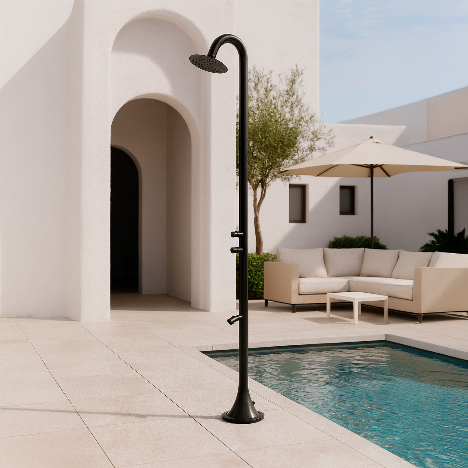 Facilità di Installazione: Le docce ad acqua fredda sono facili da installare e richiedono solo un collegamento alla rete idrica. Non ci sono complicati impianti di riscaldamento o elettrici da gestire, il che rende l’installazione rapida e adatta a diversi tipi di superfici, come giardini, patii o zone vicino alla piscina.