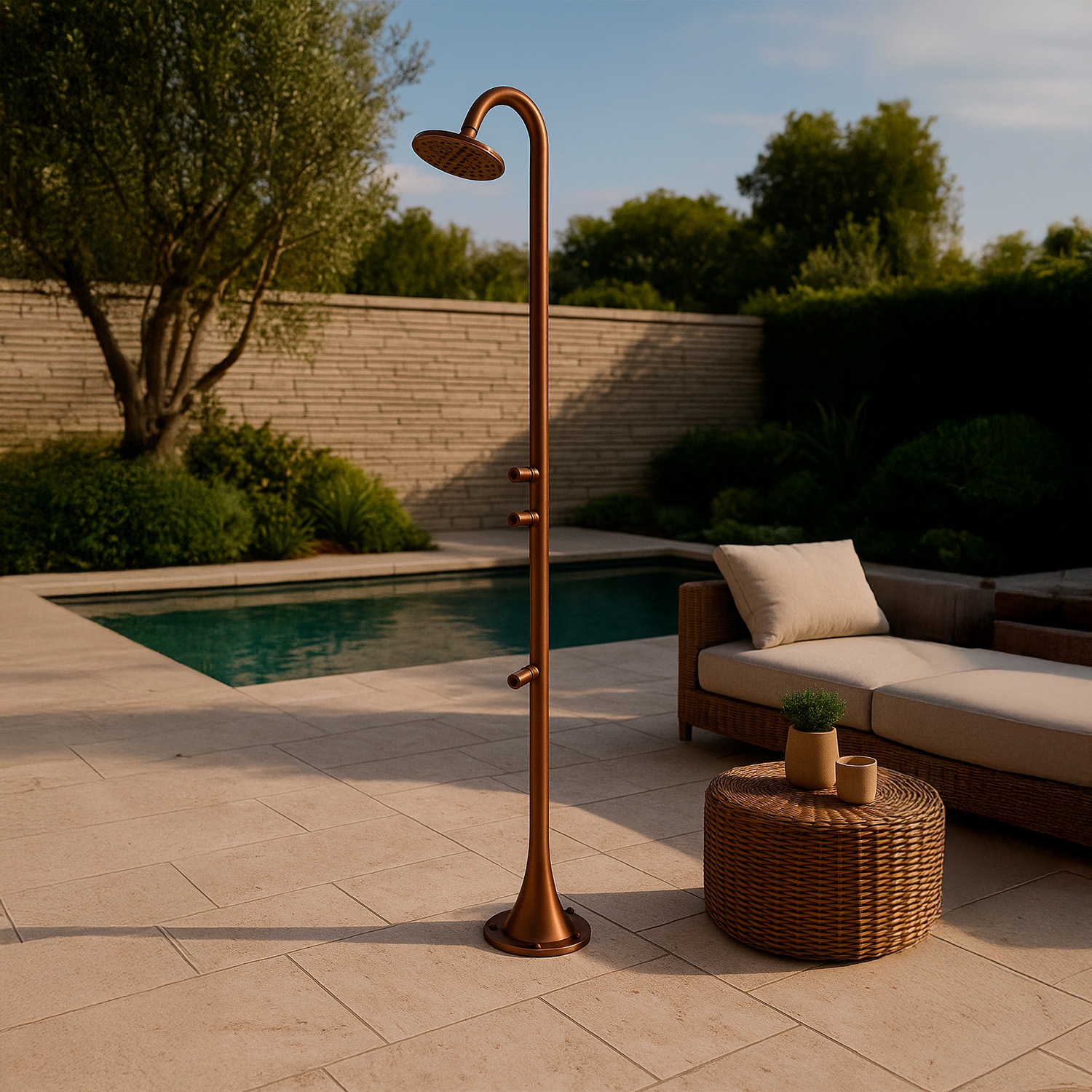 Facilità di Installazione: Le docce ad acqua fredda sono facili da installare e richiedono solo un collegamento alla rete idrica. Non ci sono complicati impianti di riscaldamento o elettrici da gestire, il che rende l’installazione rapida e adatta a diversi tipi di superfici, come giardini, patii o zone vicino alla piscina.