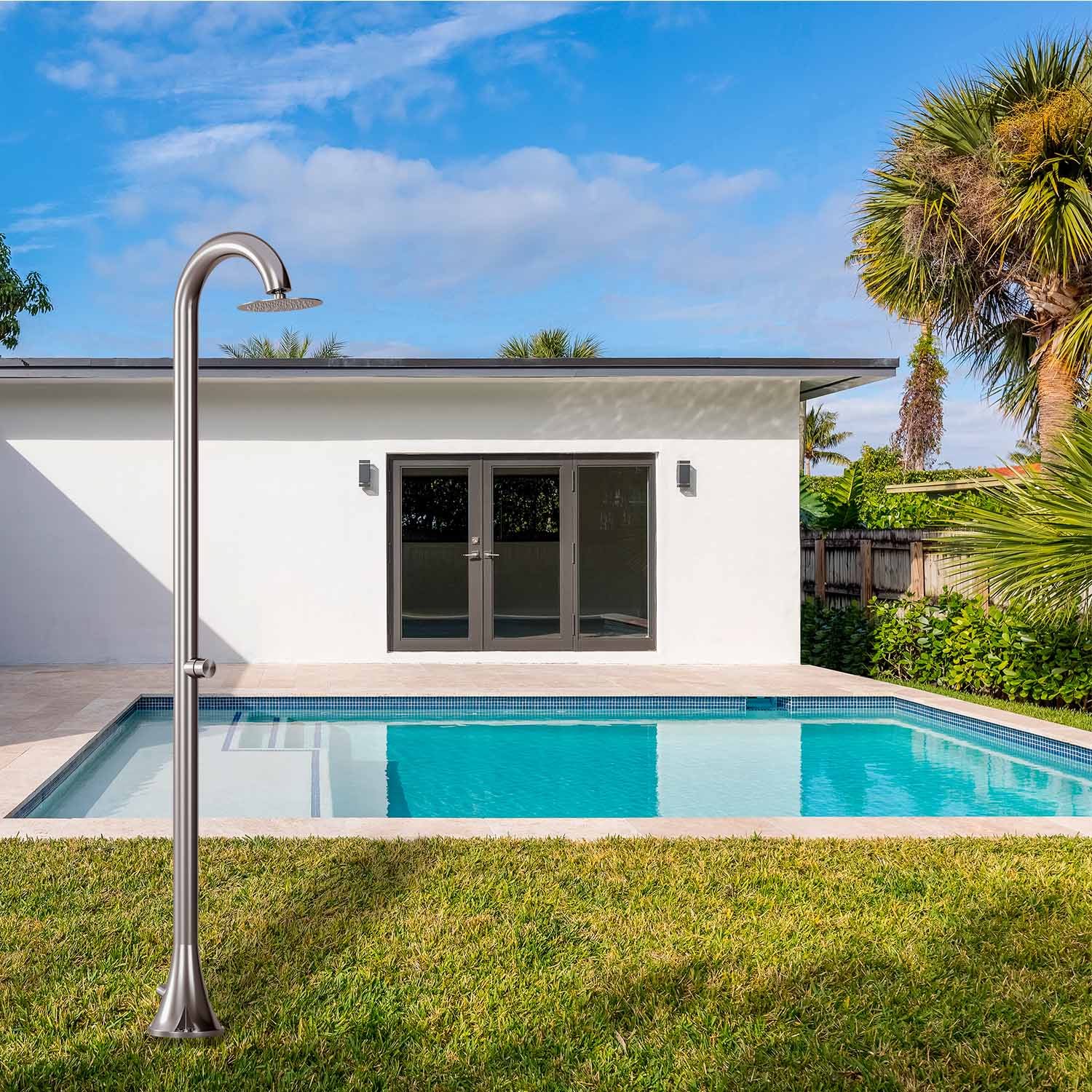 Facilità di Installazione: Le docce ad acqua fredda sono facili da installare e richiedono solo un collegamento alla rete idrica. Non ci sono complicati impianti di riscaldamento o elettrici da gestire, il che rende l’installazione rapida e adatta a diversi tipi di superfici, come giardini, patii o zone vicino alla piscina.