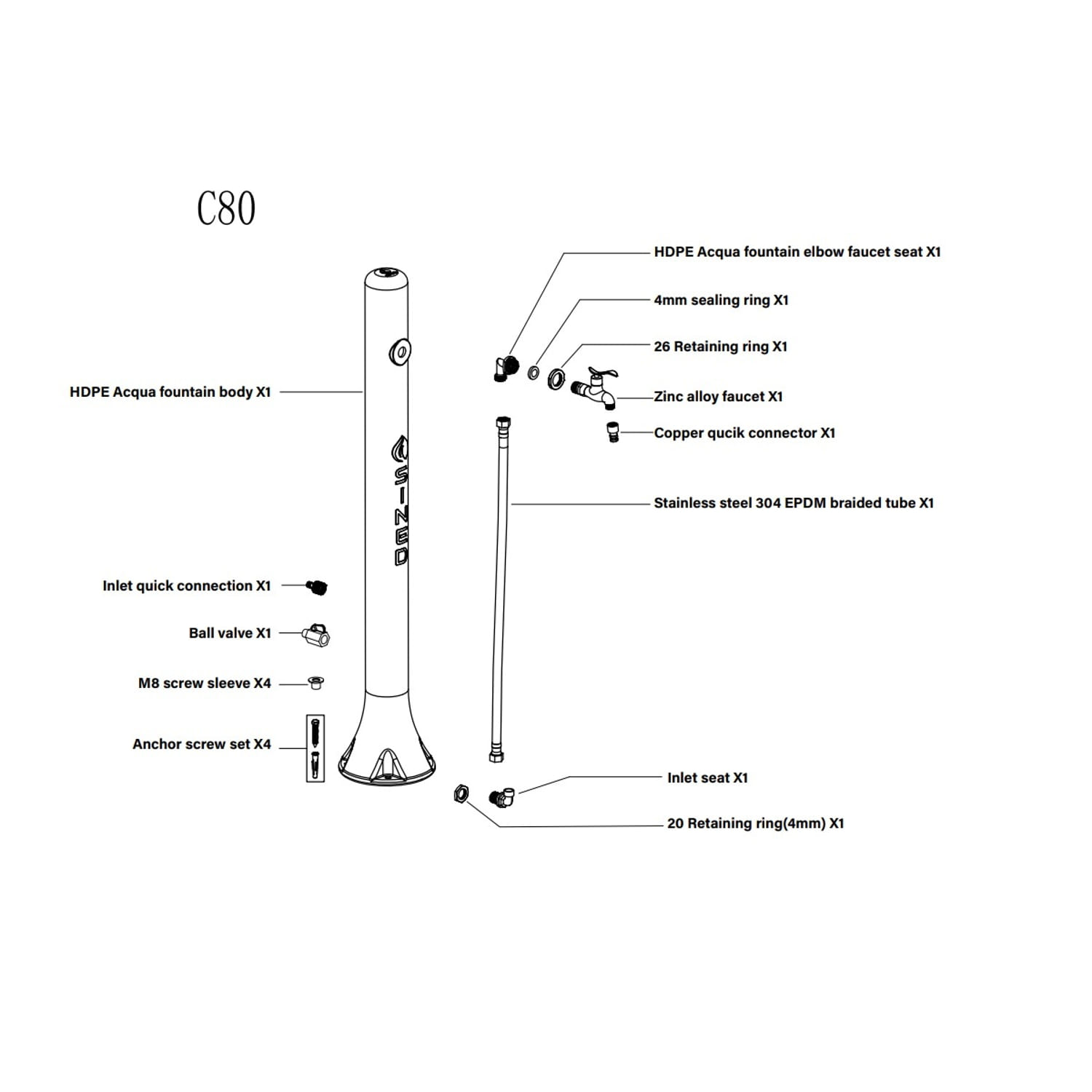 – Fontanella realizzata in HDPE (polietilene ad alta resistenza) resistente ai raggi UV, al calcare ed alla salsedine.
