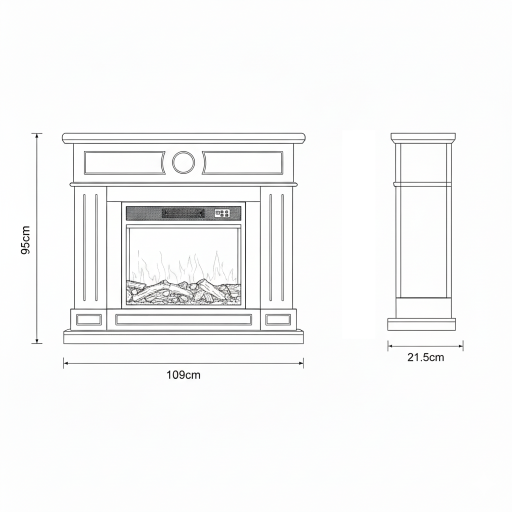 Potenza del focolare: 0-750-1500W, con effetto fiamma LED realistico e tronchi finti per un tocco naturale.