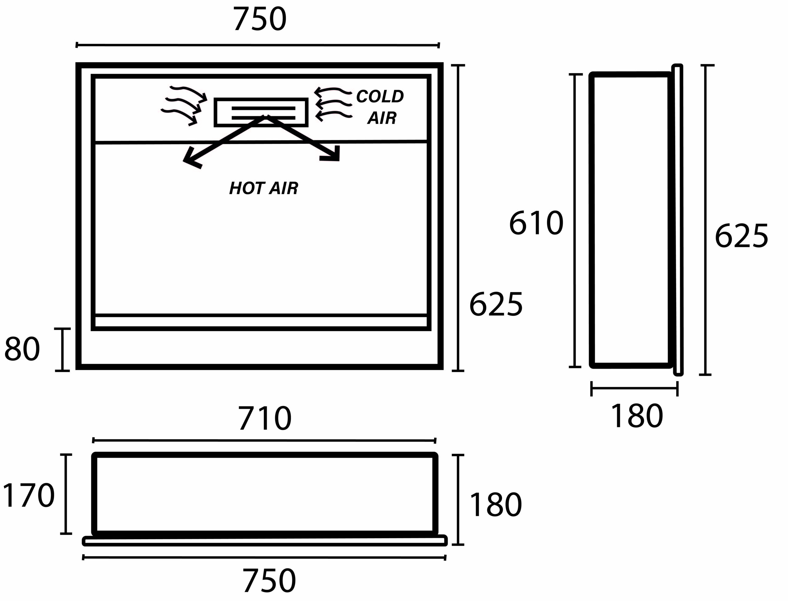 Dimensione apertura incorporata: 715 x 615 mm (con una tolleranza raccomandata di +3 mm in larghezza e altezza)