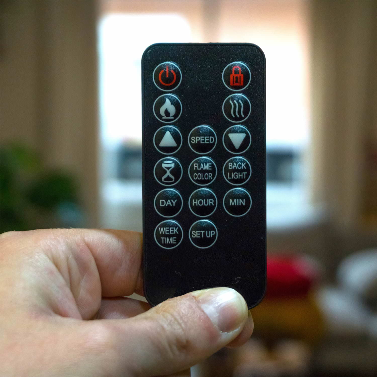 - 3-La comodità del Caminetto Stelvio è garantita dal telecomando incluso, che permette di gestire tutte le funzioni del caminetto dal comfort del tuo divano. È possibile programmare il riscaldamento per la settimana, impostare il termostato, attivare il timer e ottimizzare il consumo energetico con il sensore di finestre aperte, il tutto con pochi semplici tocchi.