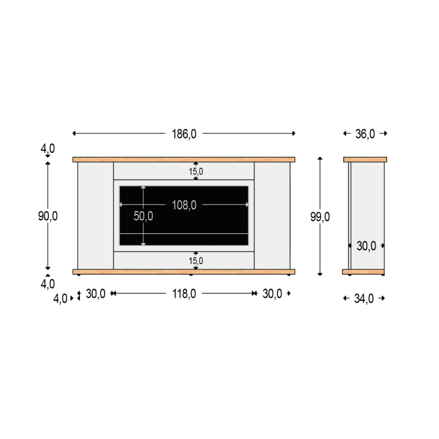 Dimensioni del Mobile in legno con caminetto elettrico: