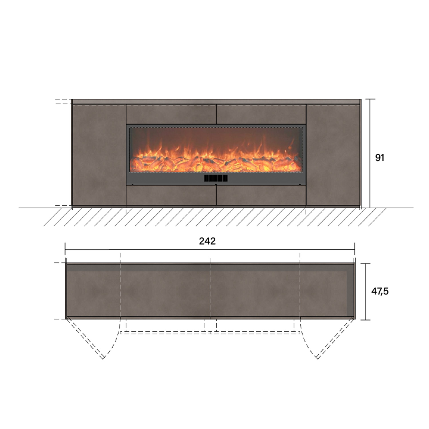 SINED Mobile Camino artigianale largo 242 cm realizzato a mano con 2 ante laterali da 45 cm e un grande cassetto da 150 cm completo di caminetto elettrico Sined Vulture 150cm Legno massello, finitura personalizzabile 100% Made in Italy qualità e design italiano