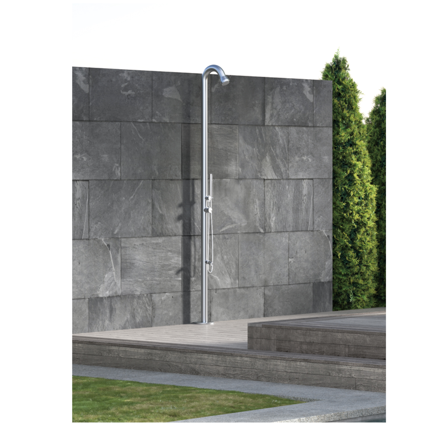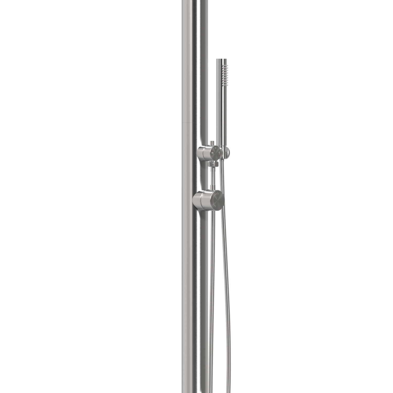 - 2-doccia da esterno in Acciaio Satinato Aisi Inox 316L con ingresso acqua calda e fredda.