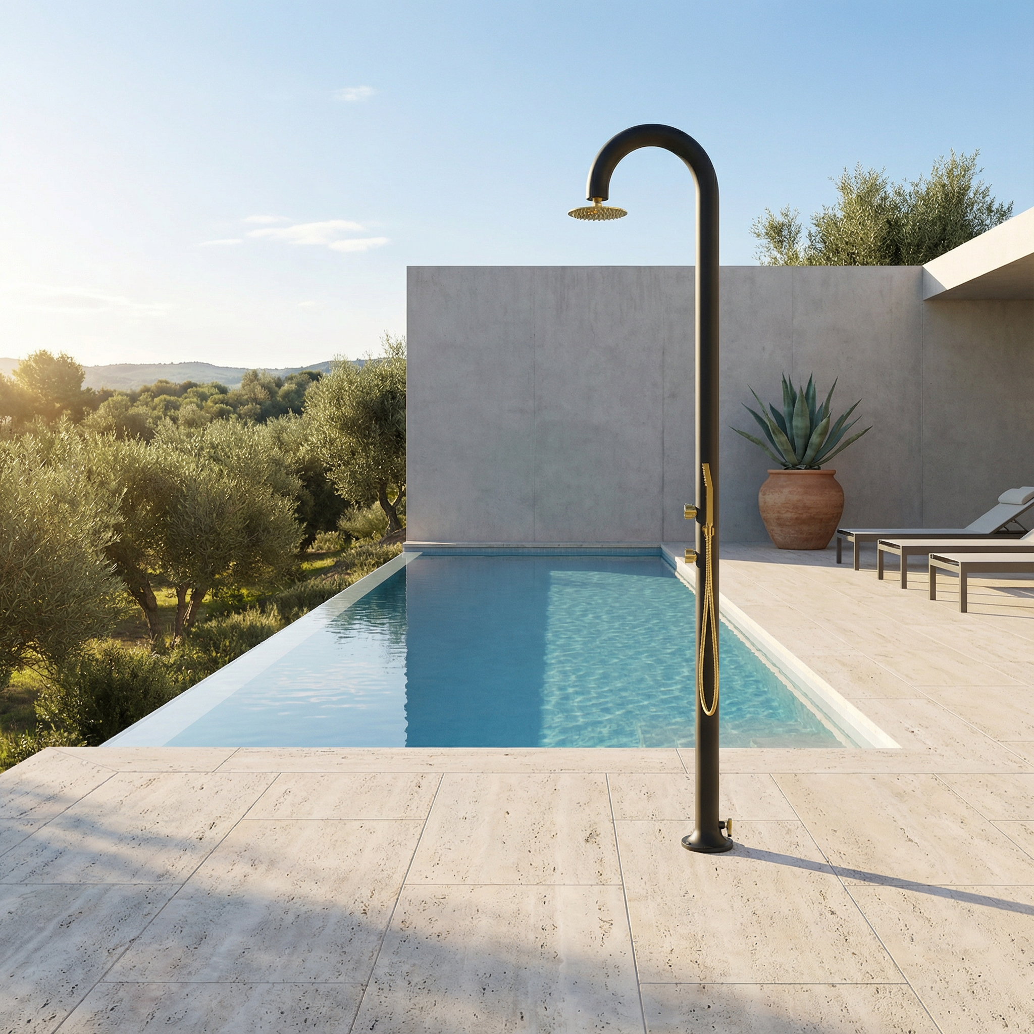 Che sia installata nel bagno di casa, in un giardino o in un contesto professionale come hotel e stabilimenti balneari, la Doccia nera e oro classica in alluminio con doccino a mano da SINED è sinonimo di qualità, design e innovazione, pronta a trasformare qualsiasi spazio in un’oasi di comfort e stile.