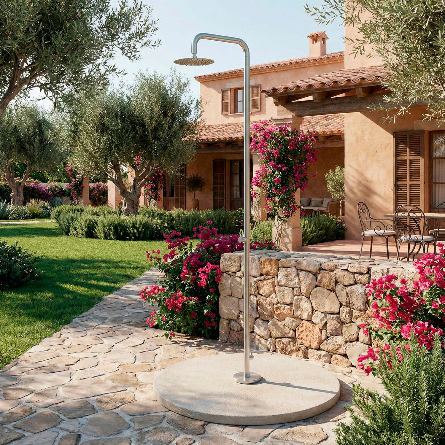 Ottimo prodotto, solido e molto elegante nel giardino. Lacciaio inox dà una sensazione di qualità e resistenza, davvero perfetta per lesterno. Il soffione da 25 cm distribuisce bene lacqua, anche se è solo per acqua fredda, per me va più che bene. Montaggio semplice, ho apprezzato che ci siano i tasselli inclusi per fissarla bene. Consigliata a chi cerca una doccia da esterno robusta e durevole.