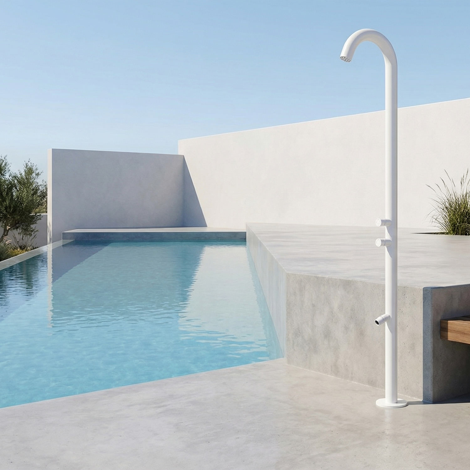 - 2-Design Elegante e Funzionale: Con un’altezza di 228.9 cm e un diametro di 6 cm, la nostra doccia si distingue per il suo design raffinato e la finitura in bianco opaco. Questo non solo la rende un elemento di spicco in qualsiasi ambiente esterno ma assicura anche che si integri armoniosamente, elevando l’estetica dello spazio circostante.