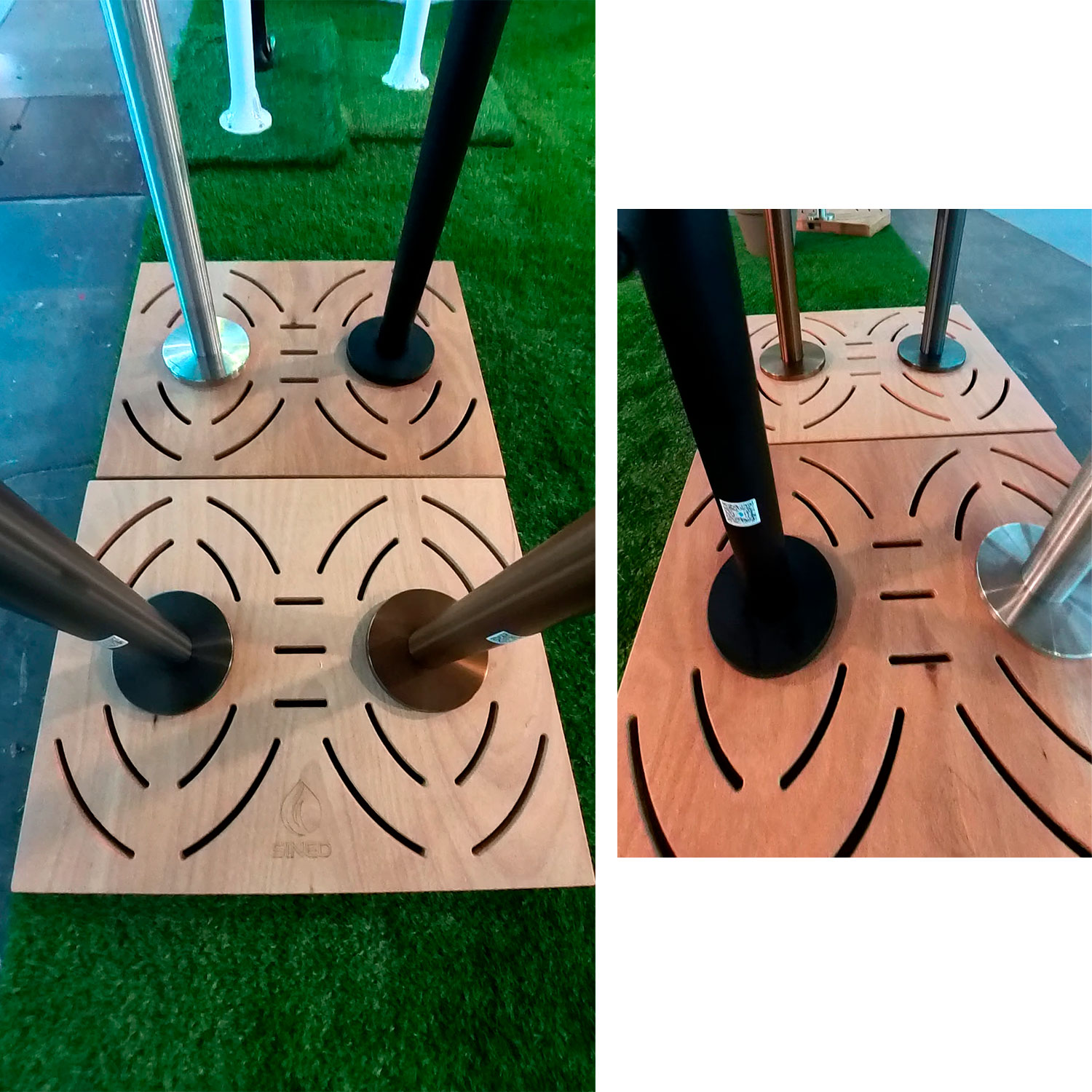 SINED Pedana Rettangolare da ESPOSIZIONE , Realizzata In Autentico Compensato Marino Okume, Resistente e Duraturo, Con Predisposizione Per Installare Due Docce Inox Sined Complete Di C-box Per Una Perfetta Integrazione. Piatto Doccia Per Esterno Fatto In Italia